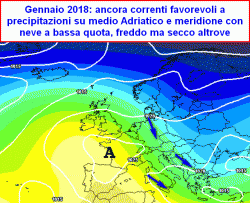 Per gennaio 2018 tornerebbe in auge la corrente da nord-est in grado di portare freddo e temperature sotto la media su gran parte d’Italia ma neve ancora una volta solo per medio Adriatico e