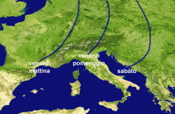Attesi fenomeni soprattutto sui rilievi e sul Triveneto, con occasionali grandinate e colpi di vento violenti. Al centro-sud bel tempo. Sabato ultimi rovesci sul Friuli Venezia Giulia e qualche temporale lungo la dorsale appenninica, soleggiato altrove, domenica bello ovunque e più caldo. Prossima settimana con tempo incerto.