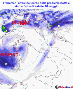 Goccia fredda un po' meno intensa del previsto ma comunque efficace: i fenomeni più importanti attesi nelle prossime ore e sino a sabato mattina. La depressione scivolerà poi sulla Sardegna, coinvolgendo ancora parzialmente nord e centro. Tra sabato sera e le prime ore di lunedì instabile al sud, segnatamente sul basso Tirreno. Prossima settimana variabile con peggioramento al nord ed in parte anche al centro tra martedì 19 e giovedi 21.