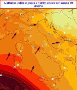 FINE SETTIMANA: sabato sarà una giornata veramente calda sull’insieme del Paese, specie sulla Sardegna, sui versanti tirrenici ed il catino padano con punte di 34-35°C sulla Sardegna.