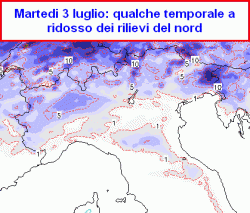 INSTABILITA’: da martedì un flusso di correnti più umide ed instabili comincerà a coinvolgere il settentrione, favorendo annuvolamenti e qualche locale manifestazione temporalesca a ridosso dei rilievi e su alcune limitate aree di pianura. Tra giovedì e venerdì l’instabilità potrebbe accentuarsi un po’, specie sul Triveneto, l’alto Piemonte e l’alta Lombardia, determinando locali flessioni termiche.