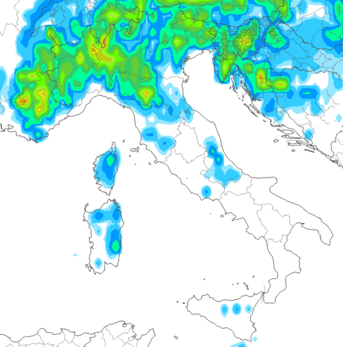 L’instabilità ancora presente su parte del nostro Paese tornerà a riproporsi nella giornata di martedì 4 giugno con temporali pomeridiano-serali al nord e sulle zone interne della Sardegna, della Toscana e dell’Abruzzo, come mostra la mappa del modello europeo: