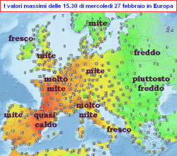 TEMPERATURE: in Italia si manterranno miti ovunque per oggi e per gran parte del fine settimana, in Europa caleranno di alcuni gradi rispetto ai valori decisamente inconsueti, talvolta da record, registrati nelle ultime 48 ore.