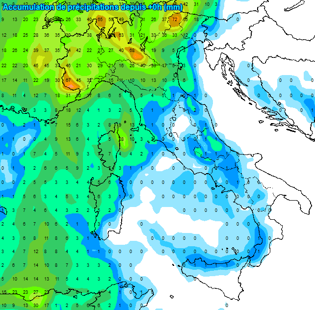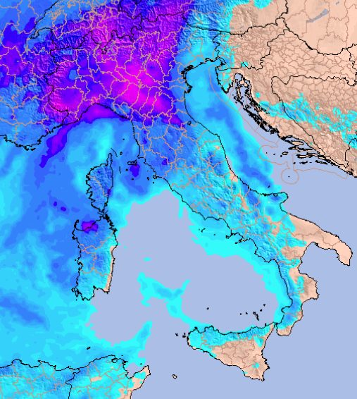 Qui gli accumuli previsti (un po’ più generosi, bisogna dirlo) dal modello europeo:
