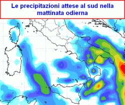 DA NOTARE: forti precipitazioni coinvolgeranno l’area jonica, specie la Calabria e il Salento, per poi risalire verso il resto del sud, in particolare sul Molise e la Lucania con possibili nubifragi e grandinate.
