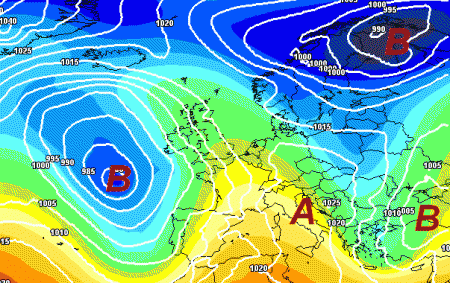 La figura stabilizzante sembra insidiata dalla saccatura presente in Atlantico, invece non sarà così. Possiamo dire che la depressione ad ovest si "autodistruggerà" sul posto, ripiegando con le briciole rimaste verso il nord Africa. Chi aspetta quindi una perturbazione da ovest dovrà attendere ancora a lungo, probabilmente fino alla terza decade mensile.