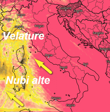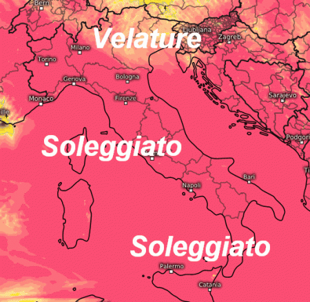 Al mattino soleggiato ovunque. Nel pomeriggio nubi medio-alte in arrivo da ovest senza conseguenze. Un po’ di Scirocco sulla Sardegna, per il resto vento debole e clima mite.