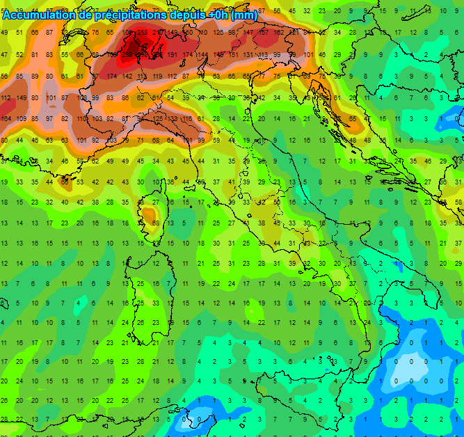 Ecco, ma alla fine quant’acqua arriverà? La sommatoria degli accumuli previsti preoccupa soprattutto sull’alto Piemonte (fino a 280mm), ma in genere su tutto il nord le precipitazioni risulteranno piuttosto abbondanti. Generosa anche la fenomenologia attesa lungo il Tirreno, ma intervallata dalle ampie finestre di bel tempo sopra descritte: