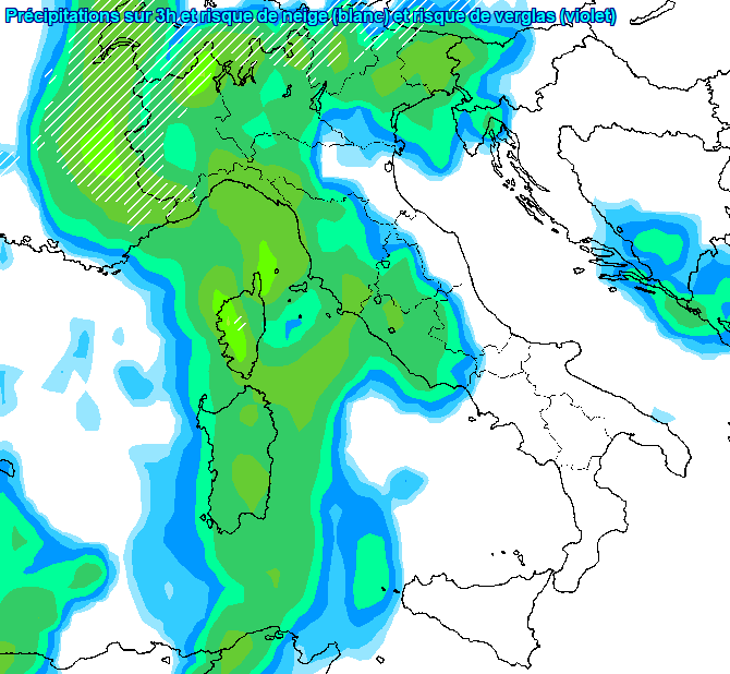 Anche il centro e il sud però sperimenteranno le loro piogge, come vediamo dalla mappa qui sotto. Due perturbazioni, una martedì 26 e una mercoledì 27, qui vediamo la prima, nel suo moto verso levante: