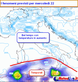 DOMANI: rasserena fin dal mattino al nord. Nel corso della giornata schiarite anche sulle centrali tirreniche. Altrove nuvoloso con rovesci sparsi alternati a frequenti momenti asciutti. Nevicate in Appennino, a tratti a quote basse sulle Marche. Non si esclude la possibilità di locali temporali su basso Adriatico, Sicilia, Calabria e Salento. Temperature in aumento al nord, in lieve calo al centro, stazionarie al sud.