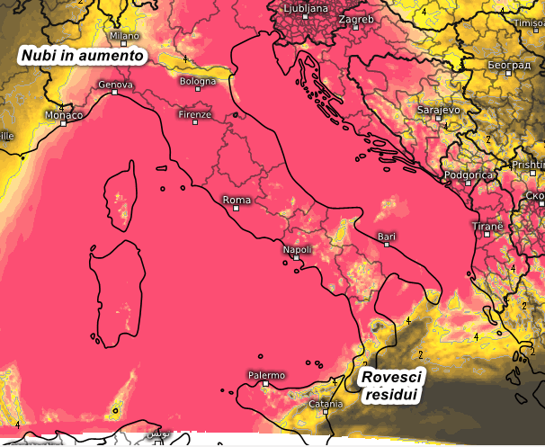 A parte residui rovesci all’estremo sud in via di attenuazione, oggi sarà ancora una giornata stabile e soleggiata da nord a sud. Un aumento della nuvolosità si verificherà al nord tra il pomeriggio e la serata, ma senza piogge.