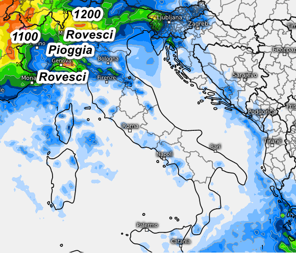 Si conferma il transito di un intenso sistema frontale che agirà sull'Italia soprattutto nella giornata di venerdi, ma già giovedi avremo le prime piogge al nord con neve in montagna.