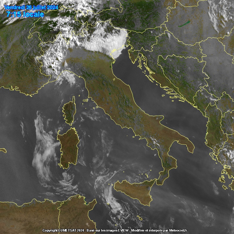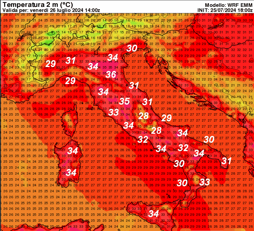 La giornata odierna sarà l’ultima ad essere governata dall’alta pressione delle Azzorre ed un caldo moderato da nord a sud, con ancora la probabilità di qualche temporale nei settori interni. A partire da domani, sabato 27 luglio, prenderà avvio una lunga ondata di caldo con i temporali che in un primo tempo tenderanno a concentrarsi sulle Alpi, per poi sparire completamente dalla scena italiana all’inizio della settimana prossima.