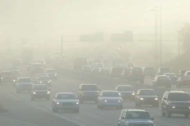 Rush hour traffic with smog.related: