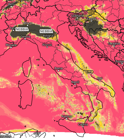 Ecco le nebbie o le nubi basse che graveranno sulle pianure del nord, dissolvendosi temporaneamente nel pomeriggio. Sul resto d’Italia nessun cambiamento con qualche nube sparsa al centro e al sud, ma senza conseguenze.