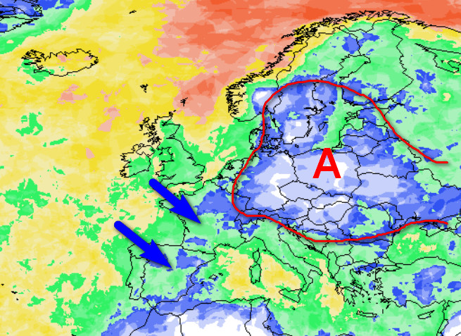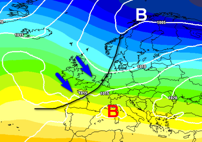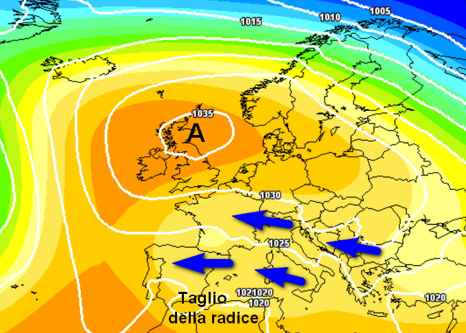 Notate inoltre l’alta pressione, che come un pallone tenderà ad isolarsi tra le Isole Britanniche e la Scandinavia, sgonfiandosi progressivamente.