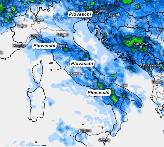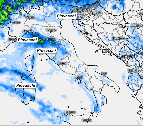 Ecco i piovaschi tra la Liguria, l’alta Toscana e il Friuli. Piovaschi sparsi anche sulla Sardegna, per il resto condizioni di variabilità, ma con basso rischio di fenomeni.
