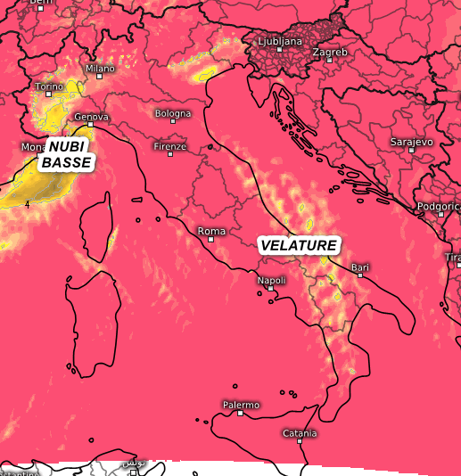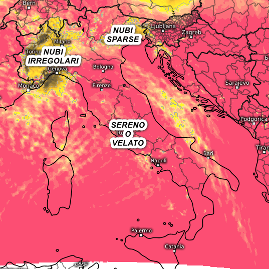 Un po’ di nubi sparse ed irregolari saranno presenti al nord, ma non associate a piogge (al massimo qualche pioviggine in Liguria). Su tutte le altre regioni tempo soleggiato o velato con eventuali addensamenti che avranno carattere locale e temporaneo.