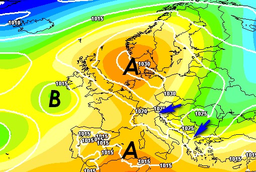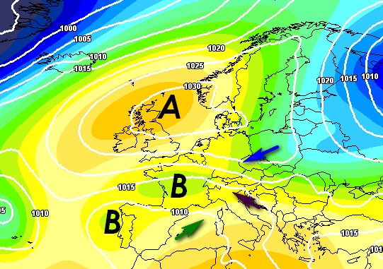 Perturbazioni atlantiche spesso frenate o deviate: rischio di fasi secche o con piogge irregolari, non risolutive.