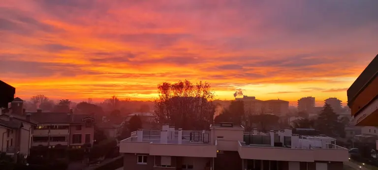 L'alba anticiclonica di lunedì 16 pomeriggio sul Milanese, un classico del Natale italiano ormai da tanti anni, salvo rare eccezioni. Il clima in questo senso non è cambiato proprio per niente.
