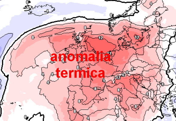 Questa mappa la dice lunga sull’anomalia prevista a 1500m: si va da 8 a 12°C in più rispetto alla media: