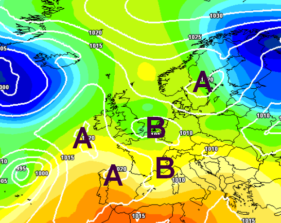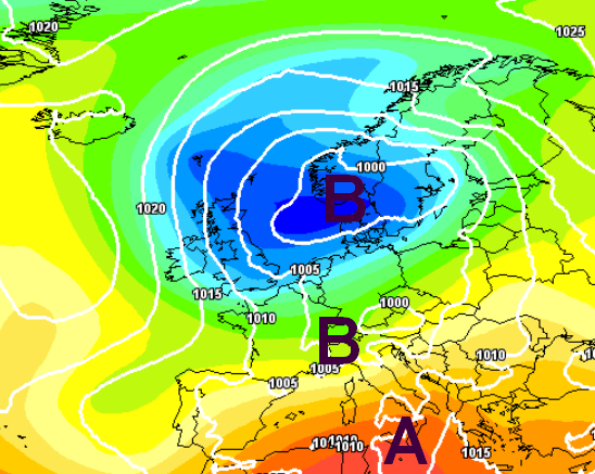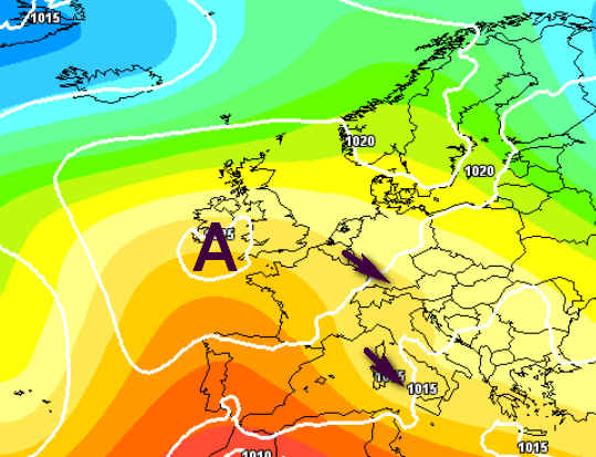Anche se andassimo a cercare una mappa favorevole all’alta pressione, la troveremmo comunque un po’ vulnerabile e sbilanciata verso ovest, eccone un esempio: