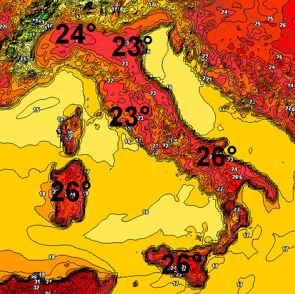 Lo farà soprattutto nel fine settimana 6-7 aprile, quando ritroveremo punte di 26°C sulle zone interne di Sicilia e Sardegna e nel Foggiano, punte di 24°C in Valpadana e nelle zone interne della Toscana, paradossalmente farà più fresco lungo le coste (le brezze marine manterranno i valori attorno ai 18-20°C).