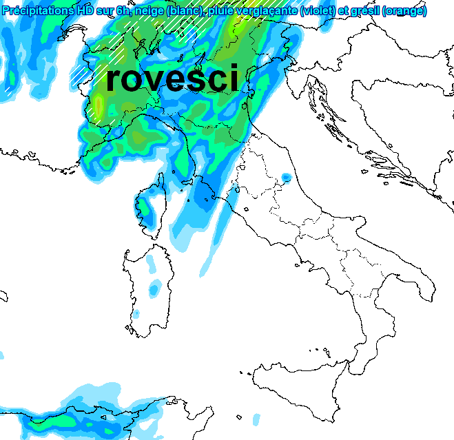 Un disturbo a questo idillio tardo primaverile potrebbe intervenire tra martedì 9 e mercoledì 10 con il passaggio di una saccatura atlantica che potrebbe determinare qualche rovescio o temporale, in movimento irregolare verso il centro-sud, come mostra il modello americano, ma la sua attendibilità al momento non supera il 45%: