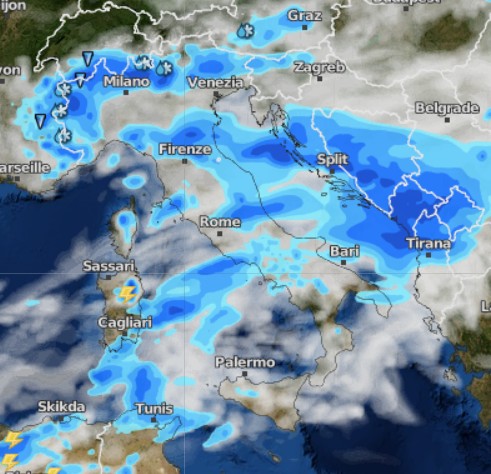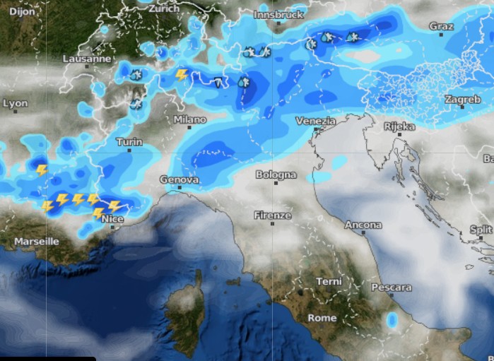 Le conseguenze temporalesche non tarderebbero a manifestarsi dapprima sul nostro settentrione, poi anche sul resto del Paese. Più di tutto però colpisce il tracollo termico a 1500m evidenziato sempre dal modello ICON, che appare francamente un po’ esagerato, ma che mette in evidenza questo tentativo estremo del freddo di raggiungere il Mediterraneo, la base grafica è sempre Meteologix:
