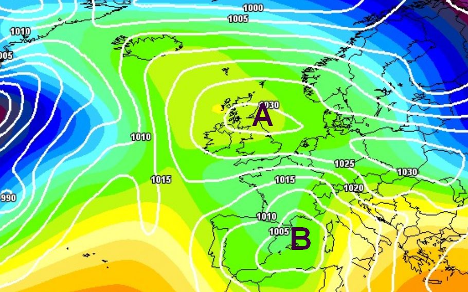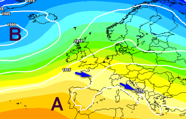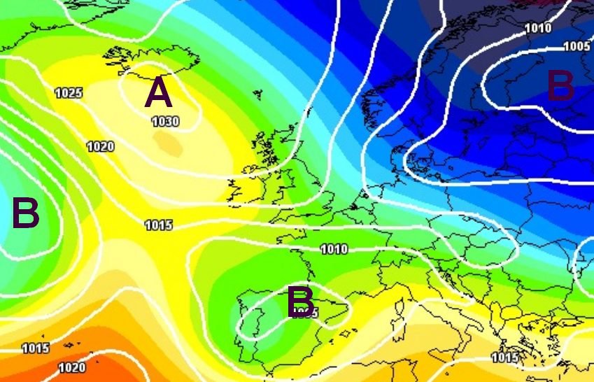 Dopo una temporanea ripresa dell’anticiclone tra il 15 e il 20 del mese, nella terza decade di novembre potrebbe arrivare l’Atlantico a tentare di normalizzare la situazione, approfittando di un ulteriore temporaneo ritiro dell’anticiclone verso l’Islanda, con un’altra depressione in sfondamento da ovest, la vediamo qui sotto: