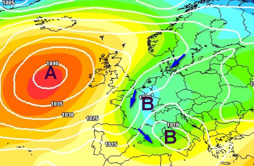 In ogni caso per loro una prima svolta dovrebbe vedersi con un affondo freddo da nord intorno al 12 novembre, grazie allo spostamento verso ovest dell’anticiclone. Questo si tradurrebbe in una fase di moderato maltempo, associata anche a nevicate sulle Alpi dalle quote medie, qui la mappa che descrive quanto appena esposto: