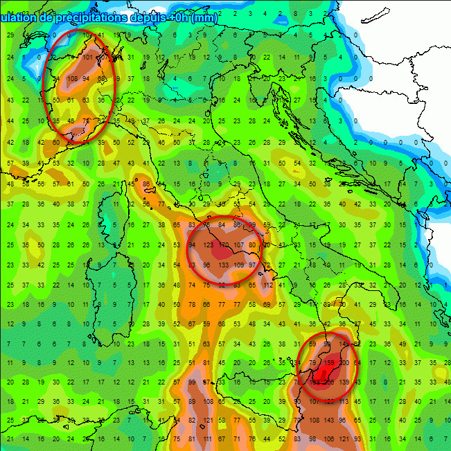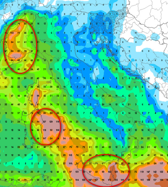 Tre zone da tenere sotto osservazione: il settore di nord-ovest (qui con nevicate abbondanti sui rilievi alpini), il Lazio e il sud della Calabria. Su queste due ultime regioni non prevediamo nevicate se non a quote elevate, ma tanta pioggia che potrebbe determinare nubifragi o alluvioni lampo. Sul resto d’Italia le precipitazioni non mancheranno, ma non presenteranno picchi eccessivi.