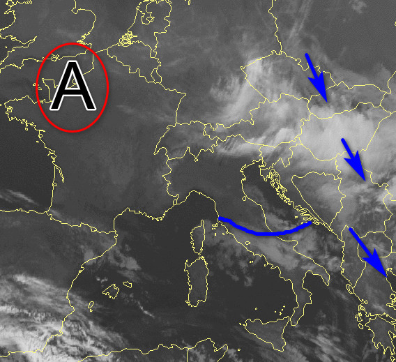 La piccola ondulazione instabile risulta adagiata sulle regioni centrali, mentre l’aria fredda si è portata ulteriormente verso levante ed interessa al momento solo la Vicina Russia. Resta ancora forte l’alta pressione sull’Europa nord-occidentale, in attesa di essere smantellata nel prossimo week-end dalle correnti atlantiche.