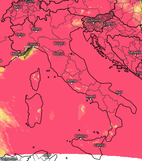 La giornata di venerdi 11 aprile si prevede invece stabile e soleggiata quasi ovunque. Di seguito, la mappa del soleggiamento totale cumulato previsto tra le 9 e le 16 di venerdi 11 aprile (rosa molto soleggiato, giallo nubi e schiarite, grigio scuro assenza di sole):
