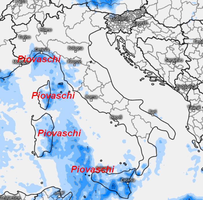 Piovaschi sparsi bagneranno nel corso della giornata la Liguria, la Corsica, la Sardegna e la Sicilia. Si tratterà di piogge non intense e che non daranno luogo ad accumuli significativi. Su tutte le altre regioni tempo asciutto, meno freddo e con un po’ di sole.