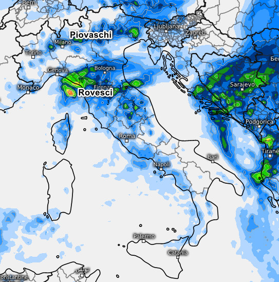 Le PIOGGE di giovedi 27 e venerdi 28, le aree coinvolte