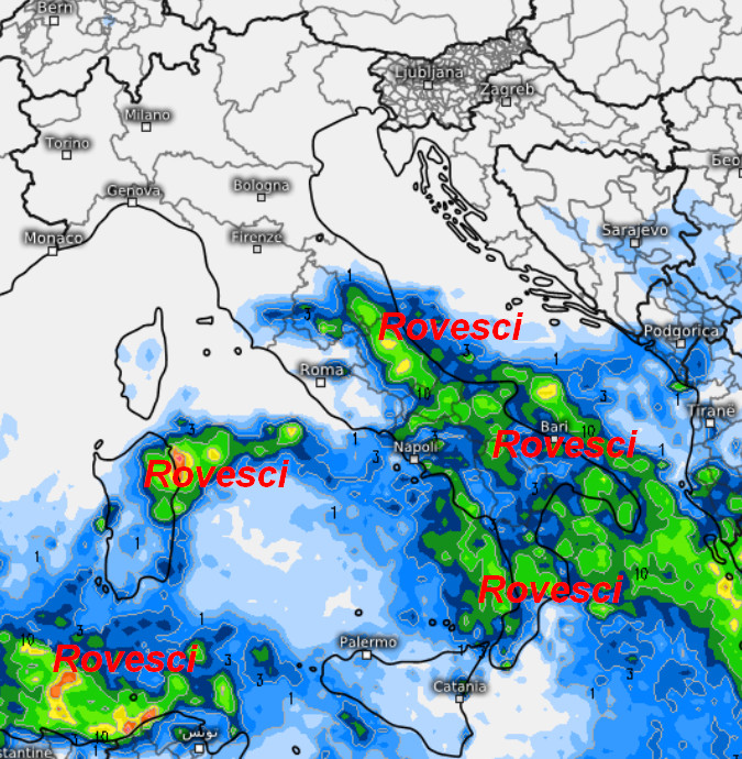 Rovesci sulla Sardegna orientale e praticamente su tutto il meridione peninsulare compreso l’Abruzzo. La neve cadrà in quota in Appennino, solo oltre i 1700 metri. Al nord e sul medio-alto Tirreno tempo soleggiato e con clima anche mite durante il giorno.