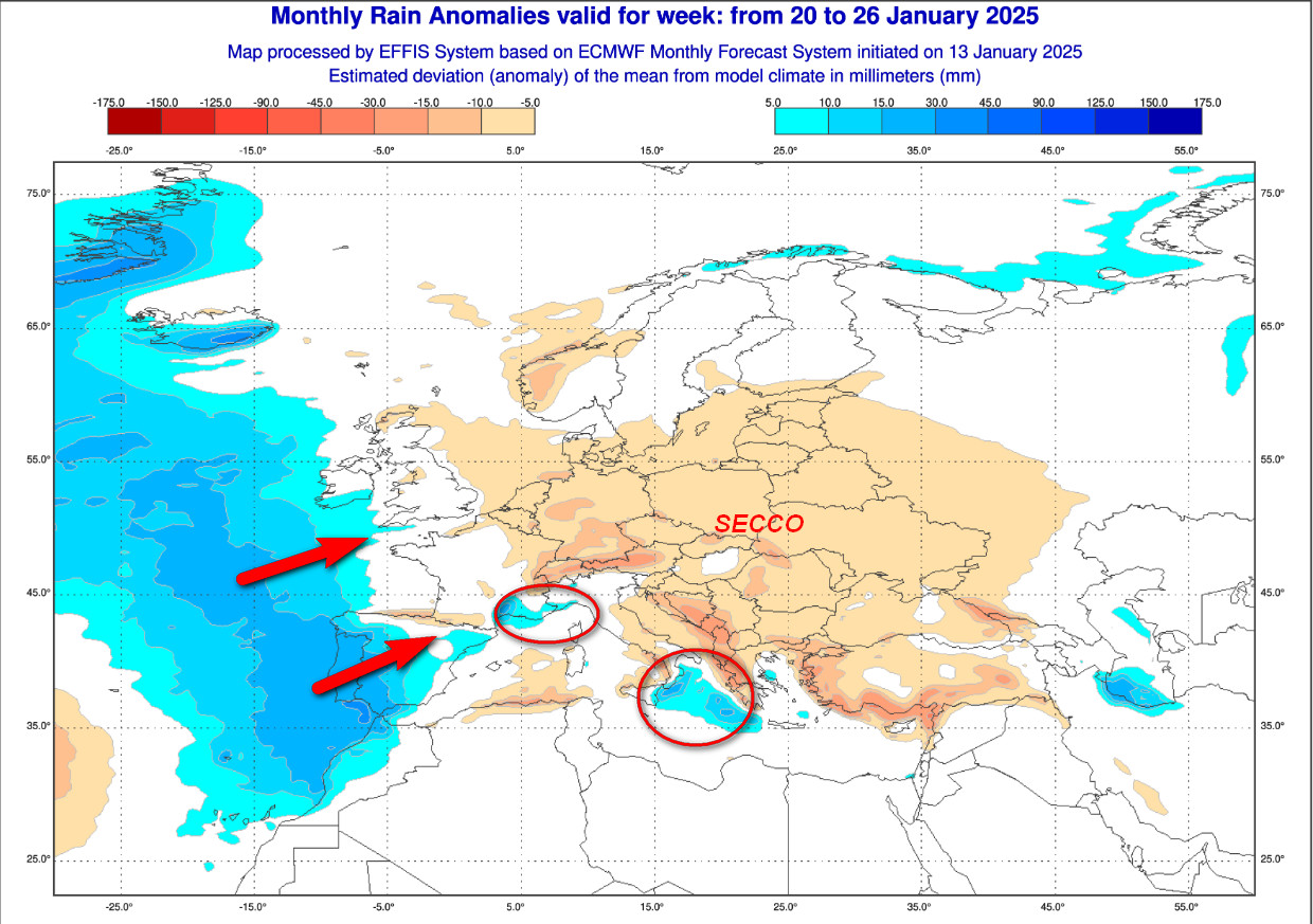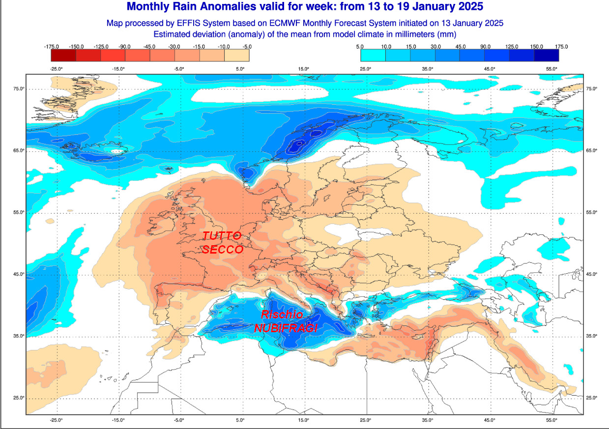 LE ANOMALIE PRECIPITATIVE ATTESE IN ITALIA FINO AL 19 GENNAIO: