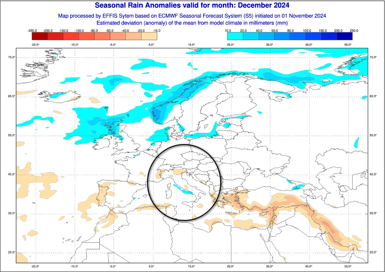 Passiamo adesso alle ANOMALIE PRECIPITATIVE sul Continente inerenti sempre al mese di dicembre: