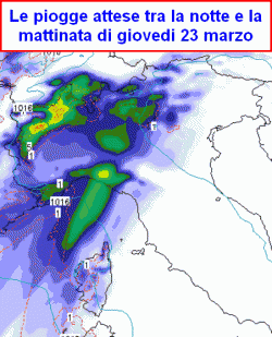 con picco atteso per giovedì 23. Coinvolta ad intermittenza la Toscana e marginalmente Umbria, Lazio e Sardegna.