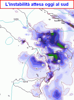 SITUAZIONE: una goccia fredda in quota interessa le nostre regioni meridionali, determinando precipitazioni temporalesche anche intense e grandinate sparse. I fenomeni si sono presentati più intensi su Puglia, Lucania, Calabria e Sicilia ed anche oggi potranno insistere per diverse ore. Altrove il tempo risulta buono, ma tra Abruzzo e basso Lazio nel pomeriggio non si esclude qualche spunto temporalesco locale.