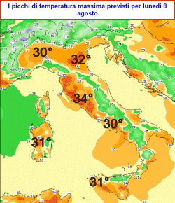 Goccia fredda ancora in azione al sud con temporali sparsi sino a lunedì. Altrove bel tempo con un po' di caldo pomeridiano. Martedì tendenza a peggioramento al nord entro sera e mercoledì temporali diffusi, in trasferimento giovedì sul medio Adriatico e le zone interne del centro e venerdì sul basso Adriatico, con calo delle temperature. Nel fine settimana legato al Ferragosto ripristino di condizioni soleggiate e più calde.