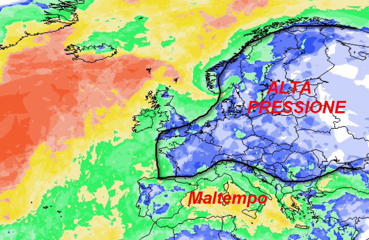 Alta pressione con freddo, ma sostanziale assenza di fenomeni, lungo tutto il comparto centro-orientale del Continente. Maltempo invece nell’area del Mediterraneo con elevata possibilità di precipitazioni anche nevose a quote interessanti, ovviamente da verificare, stante le basse temperature.