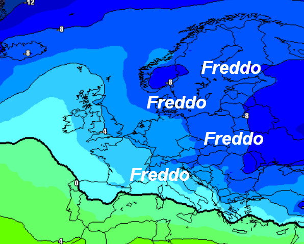 A tal proposito vi mostriamo le temperature a 1500 metri estrapolate dalla media degli scenari GFS valida per domenica 9 febbraio: