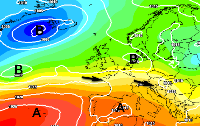 Si nota infatti il tentativo di risalita degli anticicloni (in arancione) ma senza un vero intervento deciso che stronchi una volta per tutte l’instabilità e ci consegni l’estate.