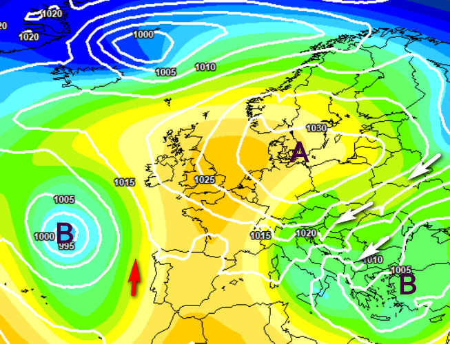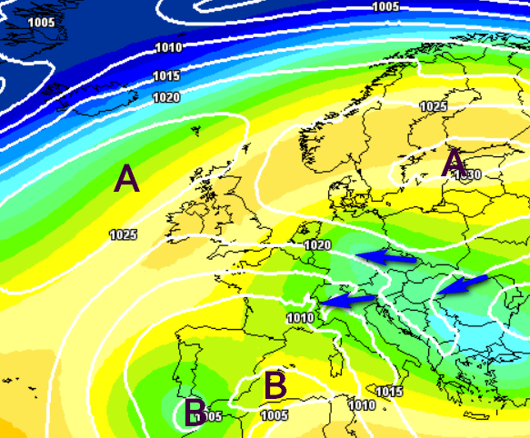 Il modello ECMWF segnala per il 4-5 aprile la formazione di una depressione a ridosso delle Baleari con richiamo di aria fredda dai quadranti orientali e anticiclone sbilanciato verso il nord Europa. Altri modelli, come ad esempio GEM, sposano la linea dell’irruzione fredda da nord-est ma non vedono la possibilità di un collegamento con le depressioni atlantiche, collegandola invece ad un ciclone in azione tra Grecia e Turchia: