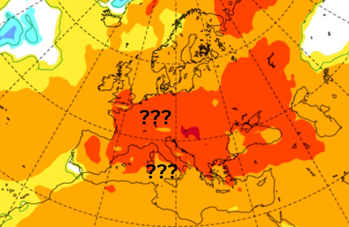 Quindi la mappa di previsione stagionale delle anomalie termiche del modello ECMWF riferita al mese di luglio lascia più di qualche dubbio: perché indicare ancora anomalie di 2-3°C sul centro Europa e sul nord Italia alla luce delle nuove emissioni modellistiche?