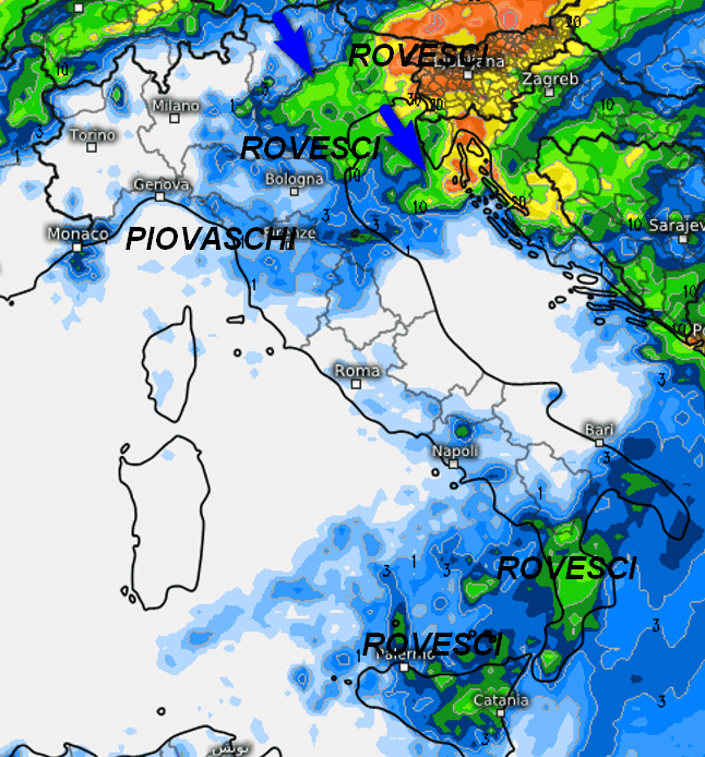 Due le perturbazioni in azione sull’Italia: la prima a carattere freddo che porterà rovesci e qualche temporale tra il nord-est e le aree interne del centro, seguita da un calo termico. Più sporadiche le piogge sul restante centro-nord, segnatamente sotto forma di piovasco locale. La seconda perturbazione sarà invece di origine afro-mediterranea ed interesserà la Sicilia e la Calabria con locali acquazzoni.