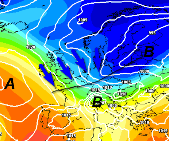 Come vedete, sull’Italia non ci sarà più l’alta pressione, che migrerà con la sua parte forte sul vicino Atlantico. Sul suo bordo orientale varrà giù aria fredda che determinerà un progressivo cambiamento del tempo da noi, con il ritorno dei fenomeni e forse anche del freddo. Un primo attacco alla stabilità lo avremo nella giornata di martedì 16 aprile, mentre uno più incisivo si farà sentire giovedi 18 aprile.