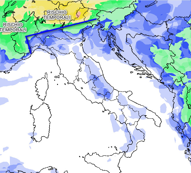 Come si evince, le aree a nord della linea blu – ovvero l’arco alpino, le zone prealpine e, a tratti, le alte pianure del Nord Italia – potrebbero essere interessate da qualche temporale di stagione. Questi fenomeni si manifesterebbero con maggiore probabilità durante le ore pomeridiane e serali, i classici acquazzoni estivi legati al riscaldamento diurno. Su tutte le altre regioni, invece, il tempo si manterrà stabile, ampiamente soleggiato e caratterizzato da un tepore estivo.